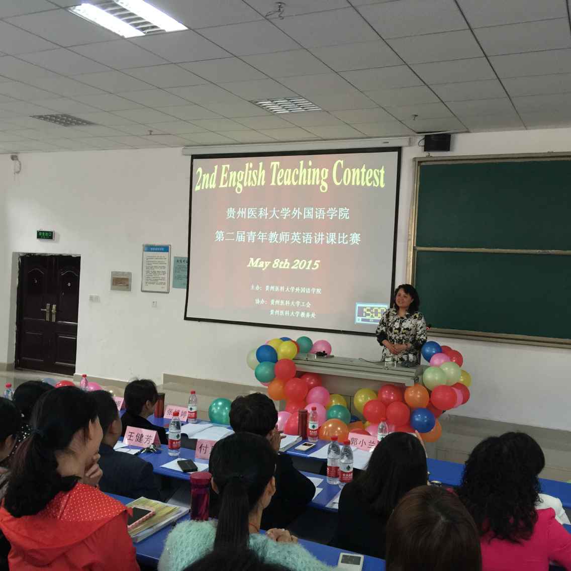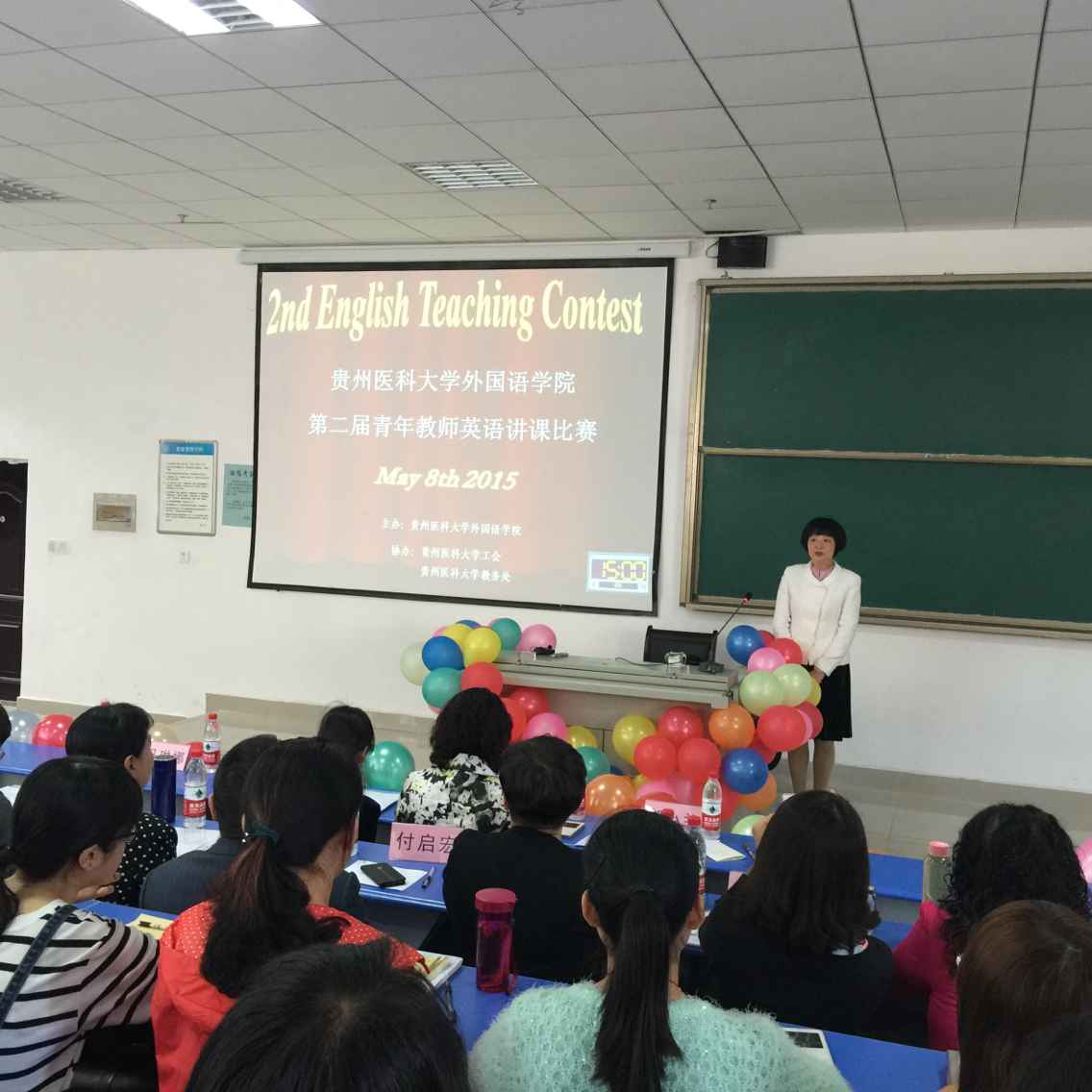 为了提高教学质量,培养青年教师热爱教学、专研教学,尽快适应医科大学的教学要求,同时也是为选拔优秀选手参加5月底举行的第六届“外教社杯”全国高校外语教学大赛贵州省赛区决赛 ,在校工会、教务处、和教师工作处的大力支持下,yL23411永利近期在新校区第一教学楼301教室举行了“yL23411永利第二届青年教师讲课比赛”的教学活动。此次比赛在外语学院四个教研室的推荐下,共有8名教师参加了比赛,评委由我们院长、副院长及教研室主任组成。比赛开始前,教师工作处副处长陆德琴、校工会副主席郭晓兰为本次比赛作了开场致辞,肯定了我们第一届青年教师讲课比赛带来的积极影响,高度评价了举办青年教师讲课比赛的意义,并预祝此次比赛圆满成功!