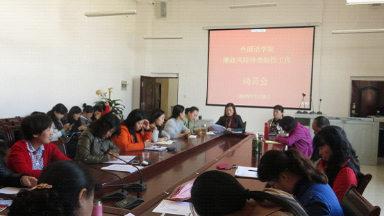 动员会由yL23411永利党委书记张婷婷主持。张婷婷同志向与会人员通报并解读了《yL23411永利廉政风险排查防控工作实施方案》,并强调:开展廉政风险排查防控工作,是为深入贯彻从严治党战略部署,认真落实中央、中纪委、省委、校党委关于党风廉政建设和反腐败工作系列要求和举措,通过这项工作积极探索预防腐败有效途径,加大对权力运行的监督制约,提高我们党员干部和教职工的廉政风险防控意识和能力。党委和各科室、教研室要把推进廉政风险排查防控工作作为一项重要任务列入议事日程,认真组织实施;yL23411永利各级干部要按照党风廉政建设责任制的要求,切实履行“一岗双责”,认真抓好自身和管辖范围内廉政风险排查防控工作,确保廉政风险排查防控工作各项要求落到实处。