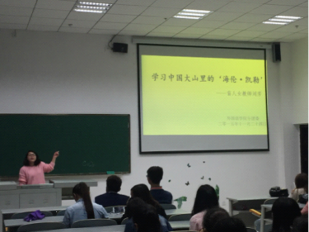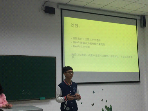 讨论会上,代曼曼同学首先为大家介绍了一下盲人教师刘芳伴随着失明,依然坚守岗位多年的感人事迹,播放了刘芳老师的相关视频,同学们看了深受感动。我们2015级英语专业的胡旭同学,曾是刘芳老师学生,他向大家介绍了一系列刘芳老师的日常工作作风和个人事迹,同学们被刘芳老师的先进事迹深深感染,纷纷为她点赞:“刘芳老师让我们相信一切皆有可能,只要你愿意付出。”“逆境并不可怕,可怕的是你没有勇气去追求光明。”“我们要像刘芳老师一样,勇于接受自己的不完美,用独有的方式实现人生价值。”……