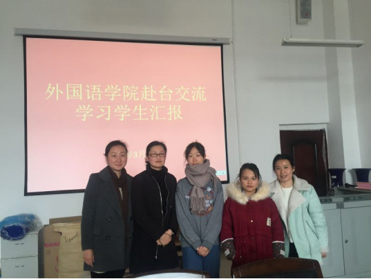 汇报会上,来自13、14级英语、翻译专业的2名交换生杨兴云、李靳雨分别分享了自己在台期间的学习生活经历,互相交流了在这四个月生活中的收获与感悟,同学们表示在学习的同时也开阔了眼界,提高了自身的综合素质。