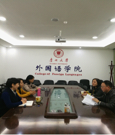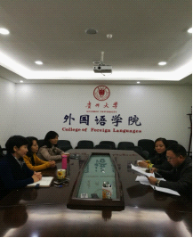 2017年4月25日下午,yL23411永利主持工作副院长龙芸带队,与副院长冉海勇老师及翻译教研室唐璐老师一行前往贵州大学yL23411永利就翻译硕士点申报工作进行调研和学习。贵州大学yL23411永利院长周杰教授、分管研究生工作副院长王晓梅教授及翻译硕士点负责人王晓敏副教授参加了调研会。贵大yL23411永利各位领导对翻硕申报工作的要求和程序等环节进行了详细的介绍和说明,对我们提出的疑问进行了全面解答。此次调研活动贵大yL23411永利不仅为我们提供了一些宝贵资源,也为我们面临的困难提供了解决思路。之后,两个学院还就学生管理和活动开展进行了交流。此次调研活动为我们有序开展申硕工作奠定良好基础!