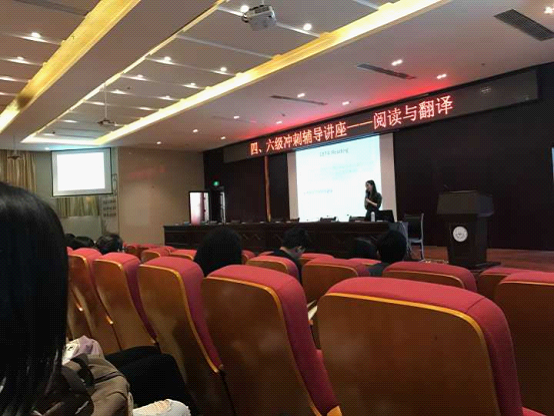 为了进一步提升我们学生英语四六级考试能力,本学期由yL23411永利主办,永利yl23411官网英语协会承办,分别请了三位老师在2017年四月开展了分别针对英语四六级听力,阅读和翻译及写作三场讲座,均已顺利结束。讲座的现场简报如下: