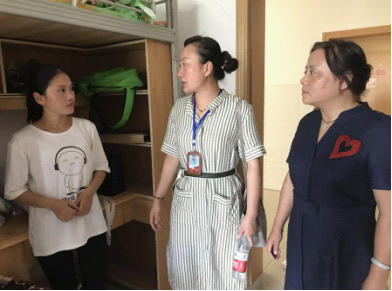 当天下午,我们领导和辅导员到学生宿舍看望了新同学们。