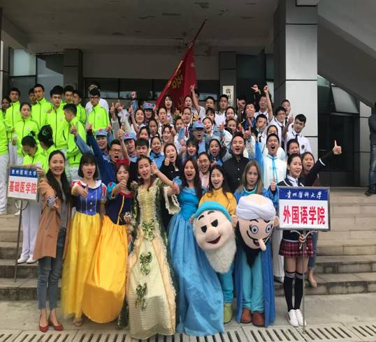 19号上午,运动会正式拉开帷幕。我们运动员代表高举院旗,迈着整齐的步伐组成方阵展现了学院的学生风采,成为开幕式里一道亮丽的风景线。其中,我们17级翻译甲班李娜同学参加我们舞龙舞狮方阵,韦梦梦等4名同学代表我们参加我们开幕式啦啦操方阵。