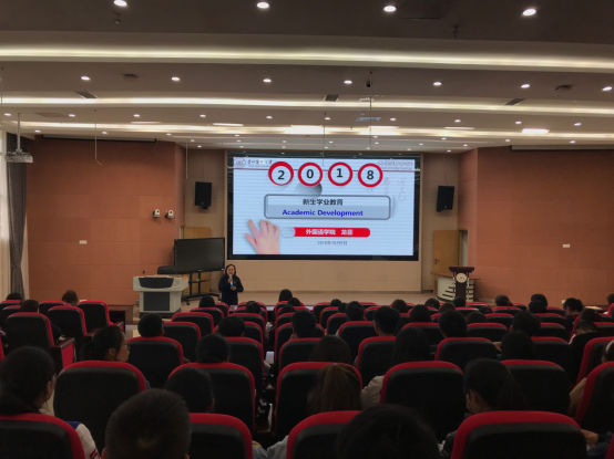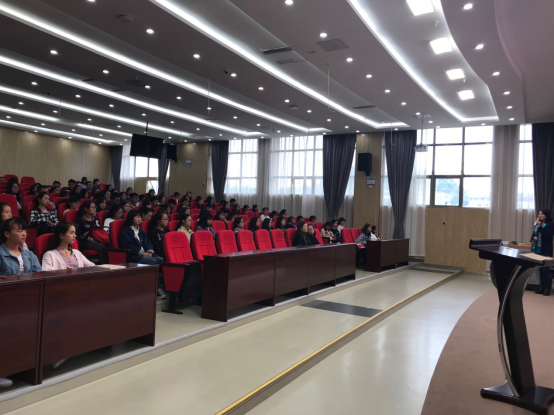 10月9日下午四点,我们在广德楼六楼电教中心演播厅召开了2018级新生入学教育大会,党委书记张婷婷、主持工作副院长龙芸、英语教研室主任余兰、辅导员徐艺娟等老师及2018级全体新生参加了此次会议,大会由徐艺娟主持。