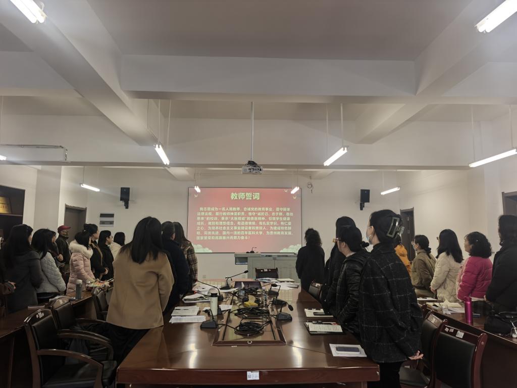 教工党支部书记杨蕙带领全体教师重温教师誓词。
