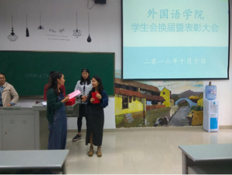 2016年10月10日,在南校区4308教室进行了我们学生会换届暨表彰大会。我们分团委负责人徐艺娟老师、学生会新老成员等40余名学生参加了本次大会。